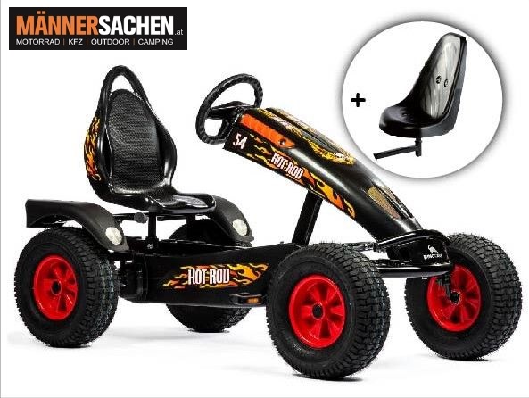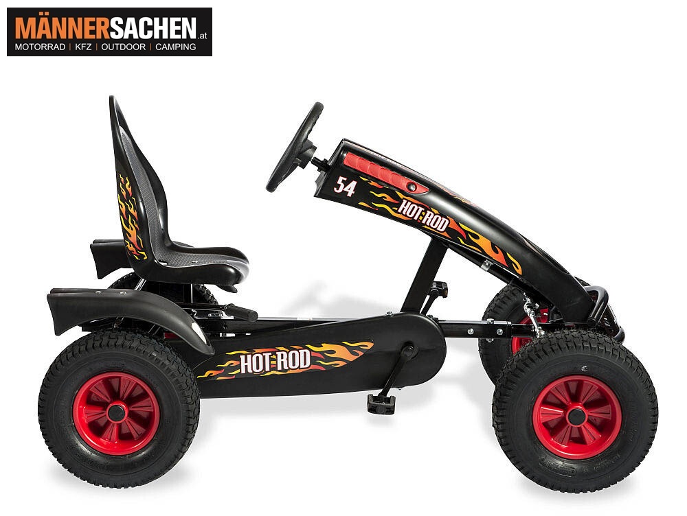 Echt scharf! Der ultimative, urbane Fahrspass mit dem DINO CARS Hot Rod BF1. Bequeme Komfortsitze, ein cooler Frontspoiler und auch die Designkotfluegel lassen das Herz eines jeden Go-Kart Profis hoeher schlagen.