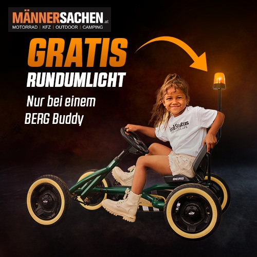 Durch die neuen Felgen und die neuen Reifen wirkt der BERG BUDDY auch gleich nochmal um einiges sportlicher.