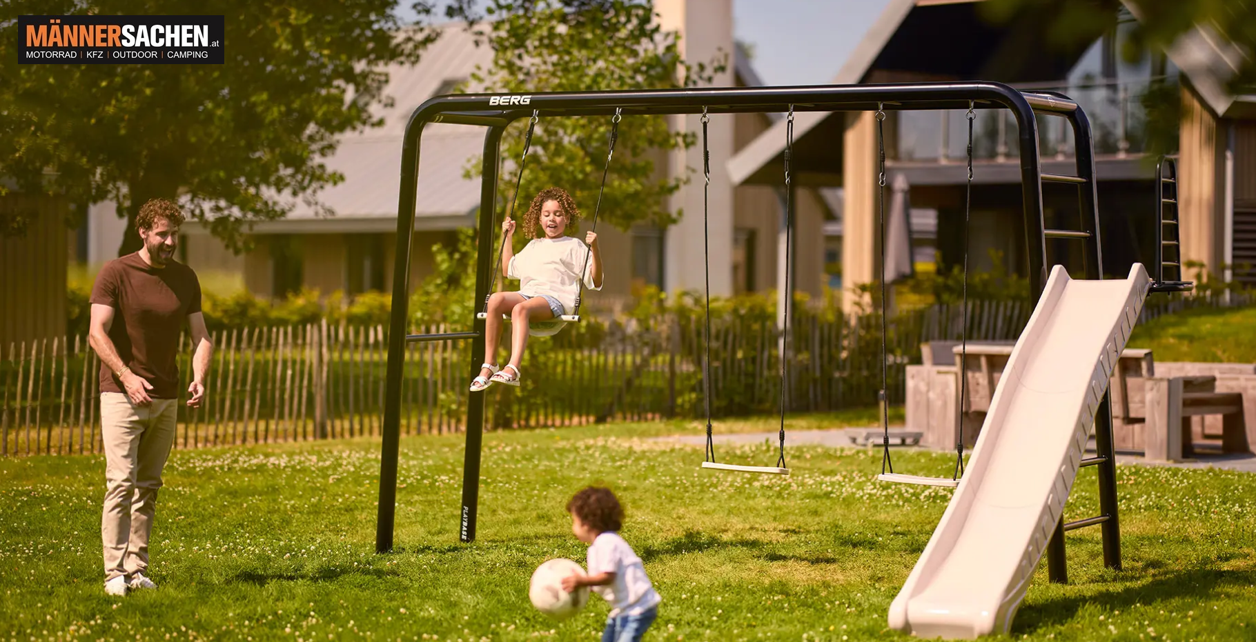 Inkludiertes Zubehör: Schaukelsitz, Turnringe, Rutsche