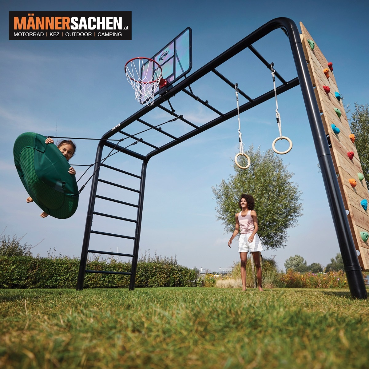 Der Rahmen dieses Spielgeräts ist eine vielseitige Plattform für alle möglichen Zwecke. Wähle aus einer großen Auswahl an Zubehör und kreiere dir einen Ort, an dem du trainieren, spielen oder entspannen kannst.