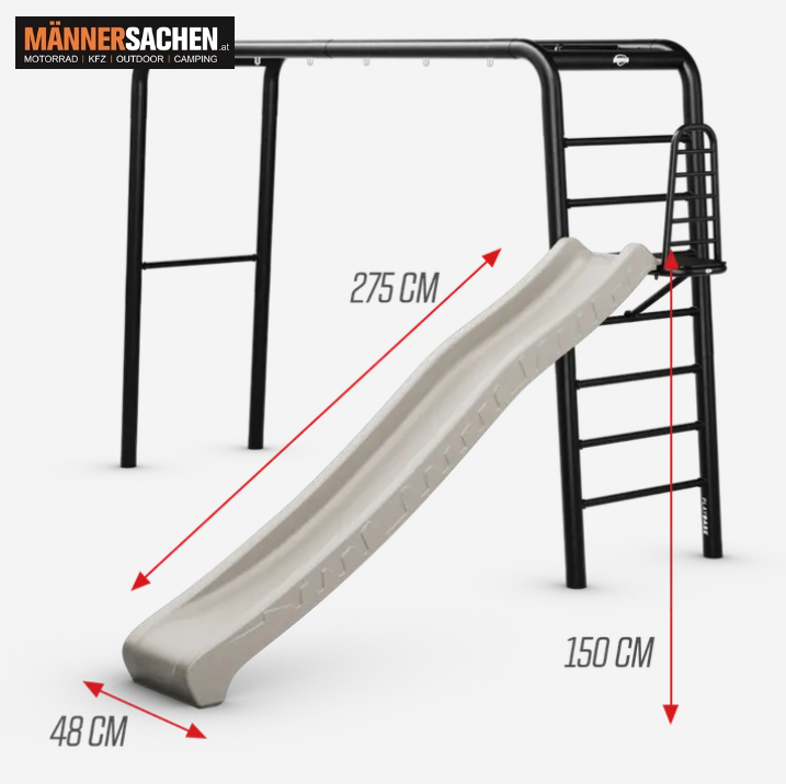 Speziell für kleine Kinder: mit einer sicheren Höhe von 150 cm und einer Rutschenlänge von fast 3 Metern.