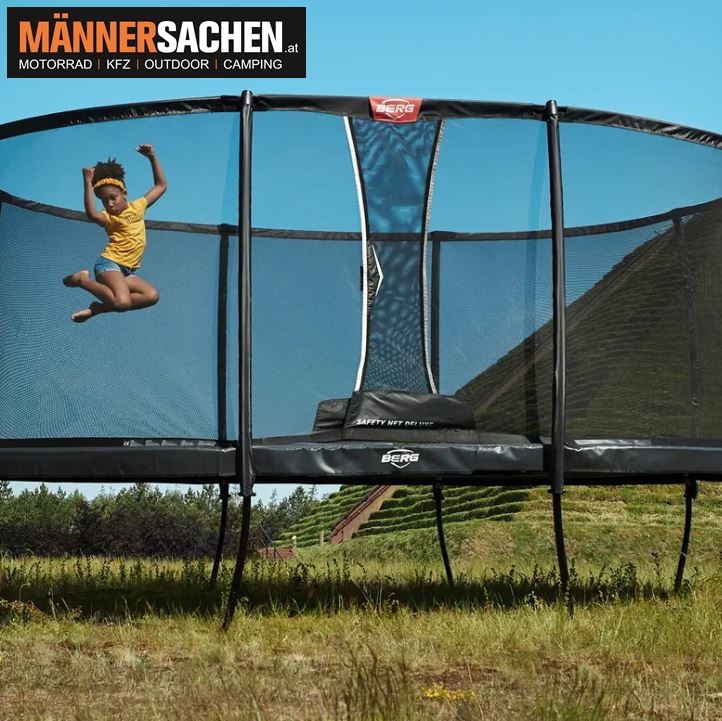 - • Lieferbar mit das hoche (220 cm) Sicherheitsnetz Deluxe XL. 22% higher, 22% safer. (nur in kombination mit dem Champion und Elite 430, 520, 410 und 500 Trampoline).