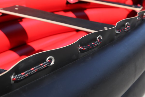 Serienmäßig mit Ösen-Süllrand. Ideal für Expedition/Wildnis-Reisende, wo viele Befestigungsmöglichkeiten benötigt werden, sowie für alle, die das Boot auch rudern möchten.