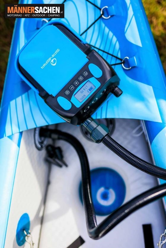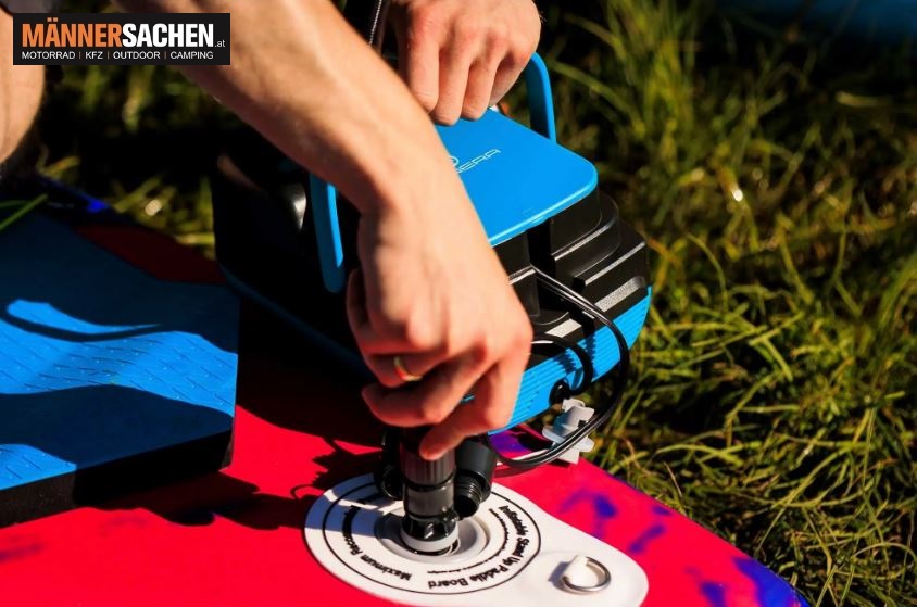 Mit einem vollen Akku können Sie ungefähr 3 oder mehr SUP-Boards aufpumpen und somit ausreichend Unterstützung für Ihre Wasserabenteuer bieten.