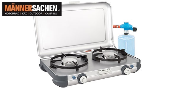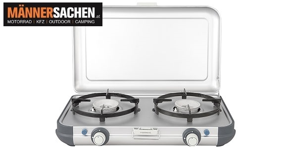 Die Camping Kitchen® 2 CV PZ (mit Piezozündung) ist der perfekte Kocher für jeden Familienausflug, sei es für ein spontanes Wochenende oder für einen längeren Ausflug. Es ist ein leichter und einfach zu transportierender Kocher mit zwei Brennern. Das kompakte Design mit eingebauten Tragegriffen ermöglicht ein platzsparendes Verstauen im Auto oder dem Wohnmobil. Weiterhin hat der Kocher hitzeresistente Topfhalter aus emailliertem Stahl, die zusätzlich als Windschutz dienen. Die einfache Abnahme der Topfhalter ermöglicht ein schnelles und einfaches Säubern.