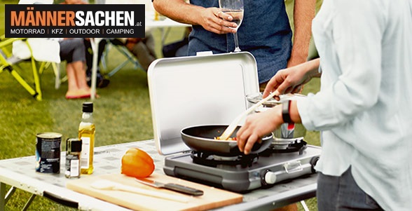Die Camping Kitchen® 2 ist der perfekte Kocher für jeden Familienausflug, sei es für ein spontanes Wochenende oder für einen längeren Ausflug. Es ist ein leichter und einfach zu transportierender Kocher mit zwei Brennern. Das kompakte Design mit eingebauten Tragegriffen ermöglicht ein platzsparendes Verstauen im Auto oder dem Wohnmobil. Weiterhin hat der Kocher hitzeresistente Topfhalter aus emailliertem Stahl, die zusätzlich als Windschutz dienen. Die einfache Abnahme der Topfhalter ermöglicht ein schnelles und einfaches Säubern.