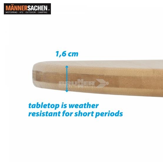 • Tischplatte aus witterungsbeständigem Bambusholz