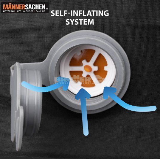 Ideal für einen optimalen Schlaf. Dank eines speziellen bidirektionalen Ventils, das den Luftstrom je nach Bedarf sperrt oder freigibt, bläst sich die Matratze selbst auf.