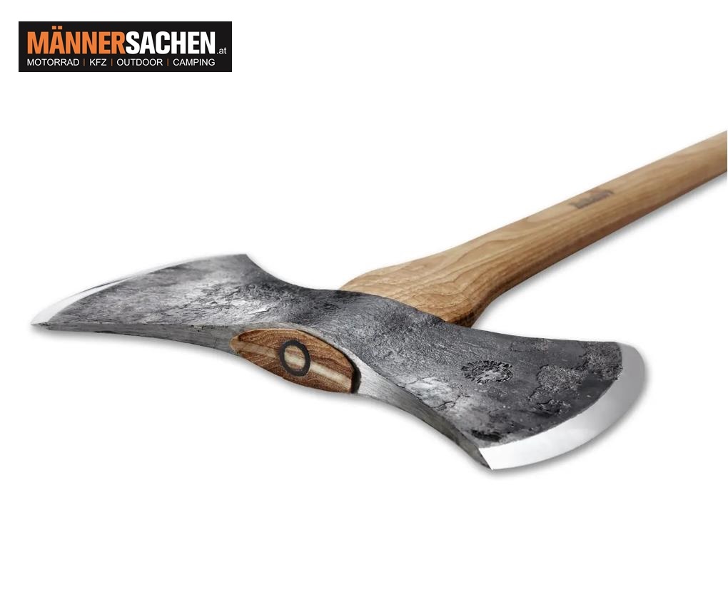Diese Art von Doppel-Bit-Äxten wurde ursprünglich von Holzfällern benutzt, die davon profitierten, jederzeit eine scharfe Axt griffbereit zu haben.