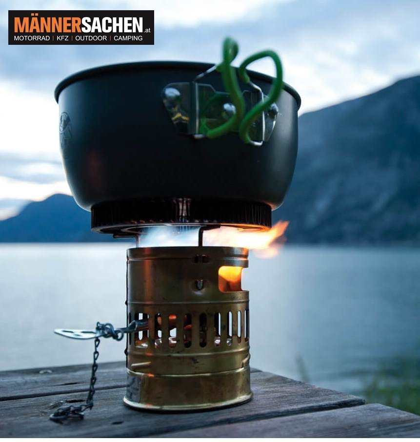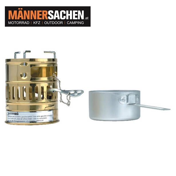 Der mitgelieferte kleine Kochtopf lässt sich als Deckel paßgenau über den Brenner stülpen und bietet so beim Transport einen zusätzlichen Schutz für das Brennsystem.