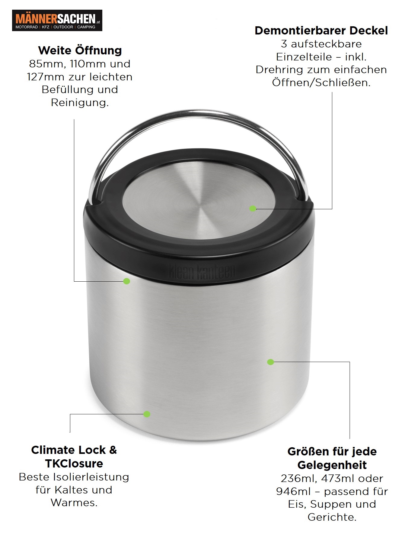 Einfach praktisch der Klean Kanteen Edelstahl Isolierbehälter TKCanister - für unterwegs, für die Arbeit oder zur nächsten Gartenparty - für Groß & Klein!