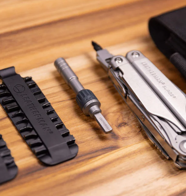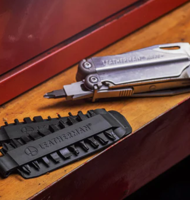 Bewahre Leatherman-Bits bequem im Griff Deines Multi-Tools auf, um sie während der Arbeit schnell zur Hand zu haben oder sicher zu verstauen.