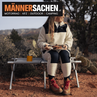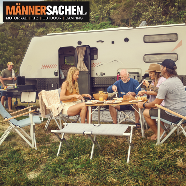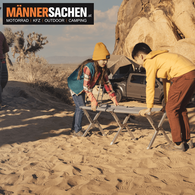 Die Bank hat eine Tragfähigkeit von bis zu 136 kg und kann zum Beispiel auch als Abstellfläche für die Kühlbox oder als improvisierter Tisch genutzt werden.