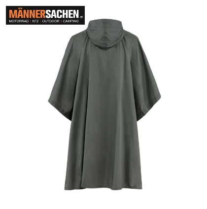 Langer Poncho mit Kapuze, der während der Wanderung auch über dem Rucksack getragen werden kann.