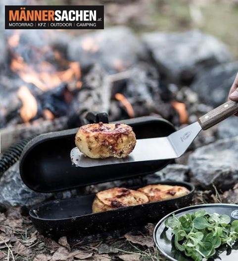 Der Kartoffelbräter steht stabil auf jedem Untergrund und ist sowohl für den Einsatz im Freien als auch im Backofen geeignet.