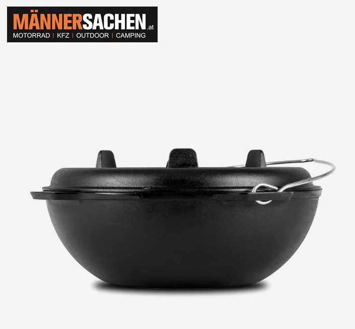 Ob am Lagerfeuer, Herd oder Atago: Der gusseiserne Kessel mit Edelstahlhenkel und Deckel macht jede Feuerstelle zur Gourmet-Station.