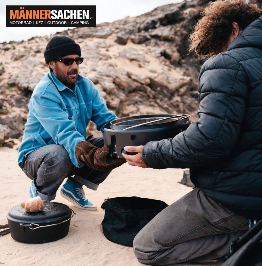 Die mattschwarze Lackierung verleiht dem Atago Black einen markanten, reduzierten Look und bildet einen starken Kontrast zum offenen Feuer. Robust verarbeitet und für unterschiedlichste Einsatzorte ausgelegt, ist er ein zuverlässiger Begleiter für Outdoor-Abenteuer, den Garten, die Terrasse oder anspruchsvolle Bedingungen in der Natur.
