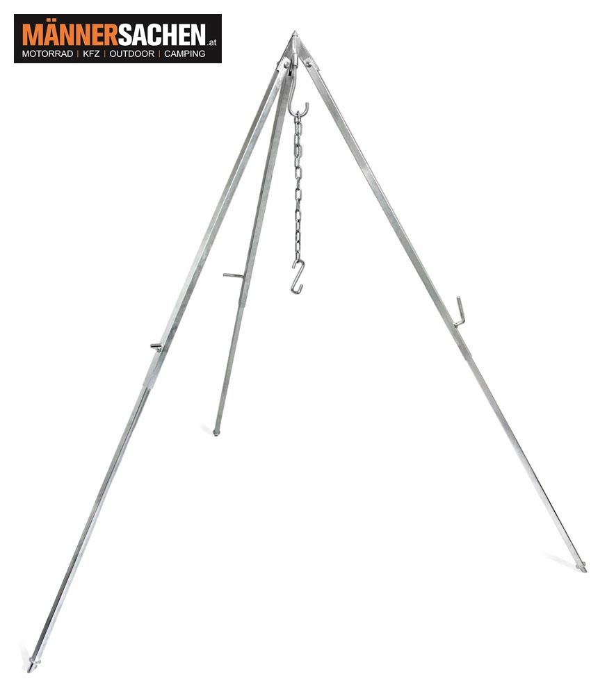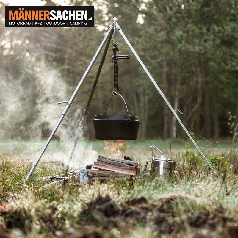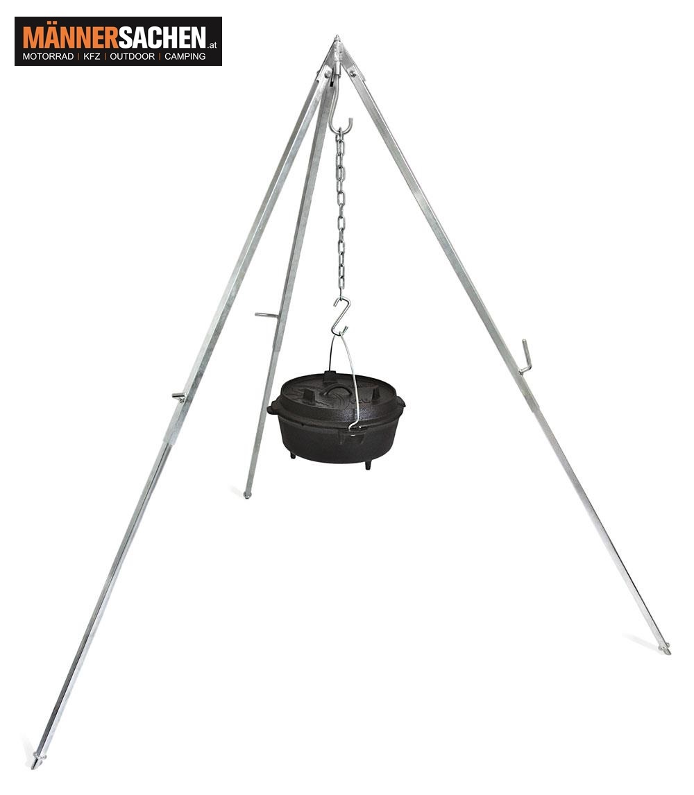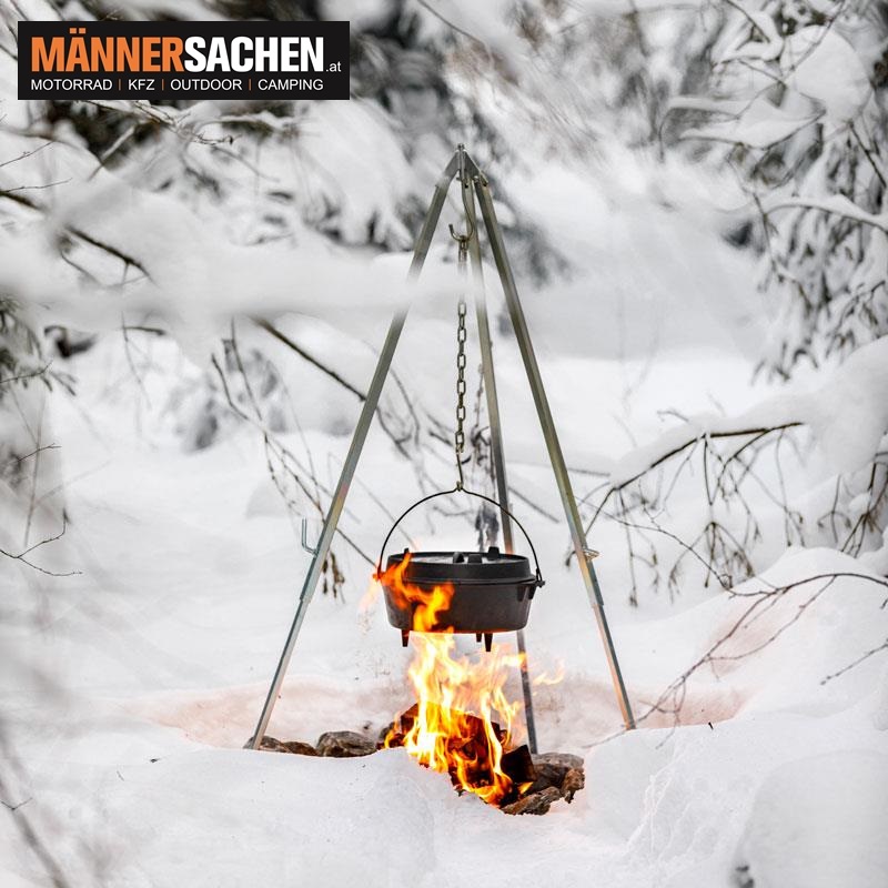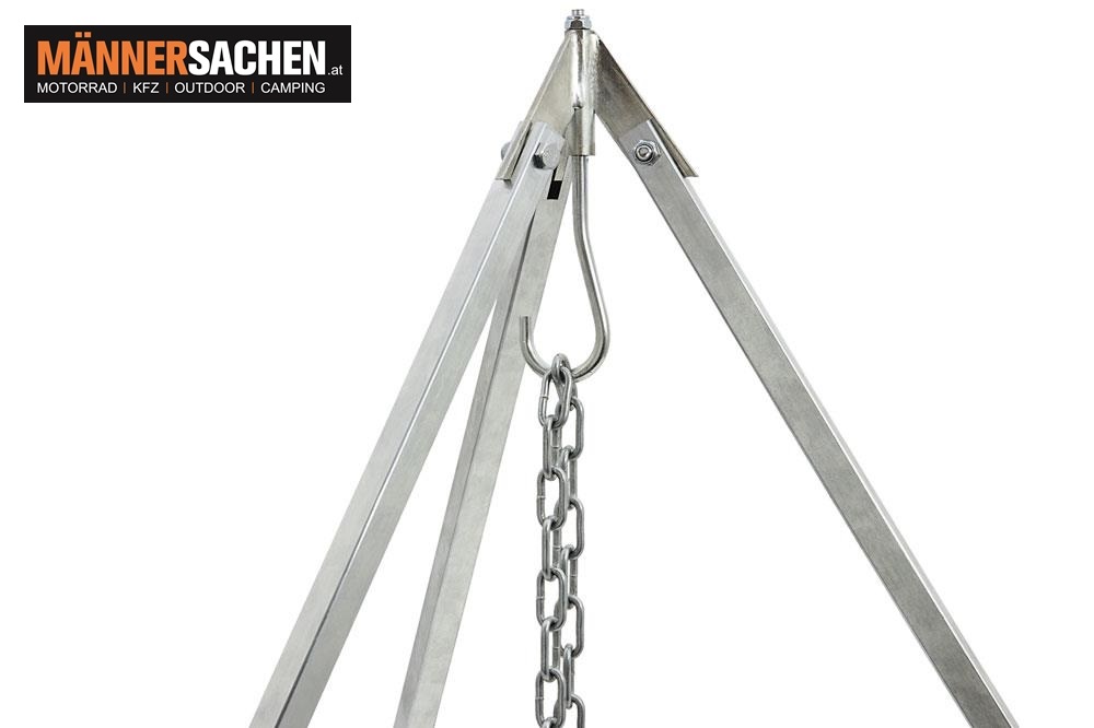 Den Abstand zu deiner Kochstelle regelst du dabei bequem über die Kettenlänge des Dreibeins.