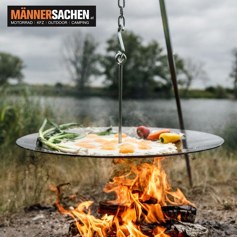 Komm auf den Geschmack der amerikanischen Prärie und werde zum waschechten Viehtreiber mit deiner Cowboykochstelle, der Petromax Hänge-Feuerschale Made in Germany.