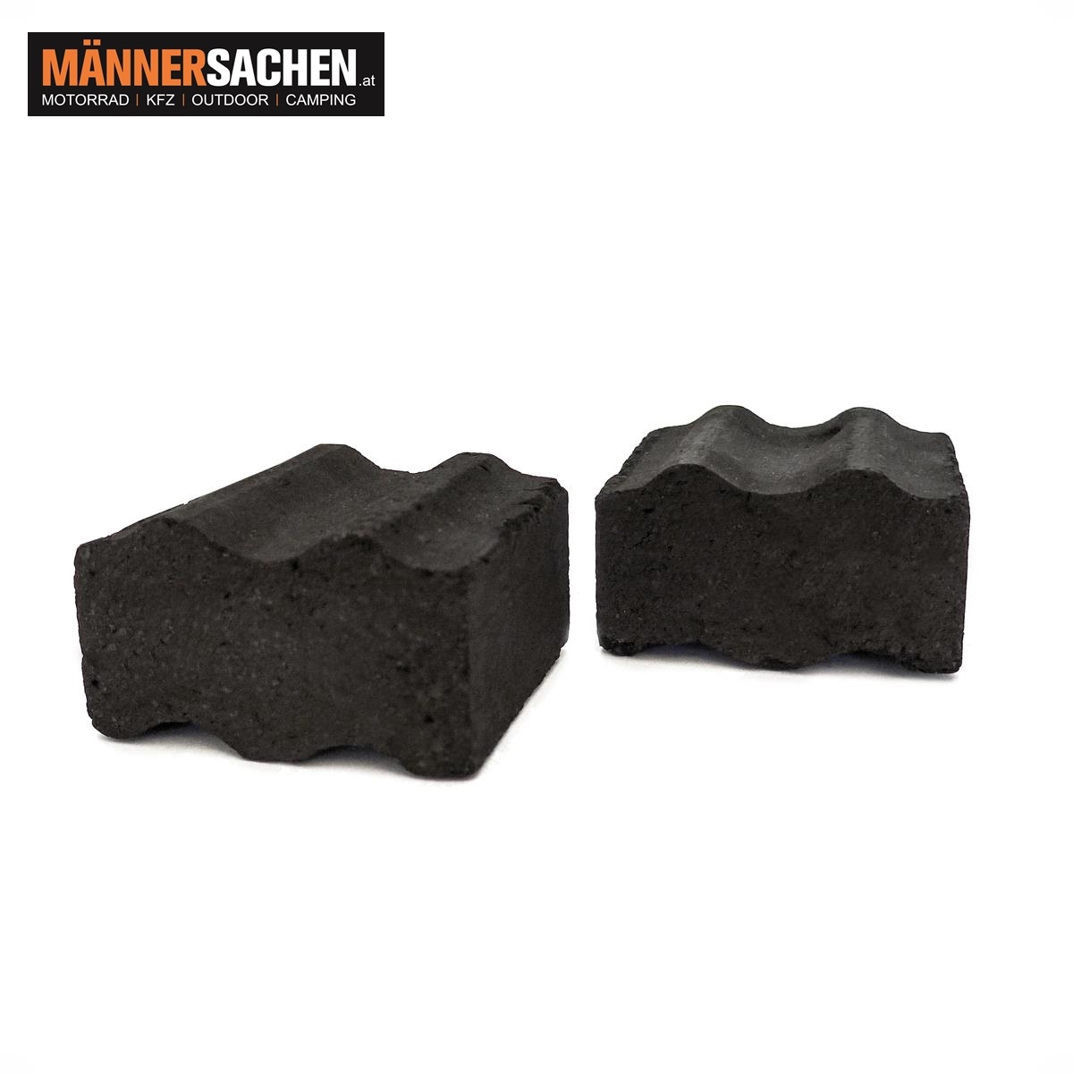 Bei einer Brenndauer von bis zu vier Stunden ist die Kohle formstabil und erzeugt eine gleichmäßige Glut mit konstant hohem Heizwert. Solltest du sie ablöschen, sind die Cabix Plus anschließend wiederverwendbar. Die stapelbare, eckige Form spart dir Platz bei der Lagerung.