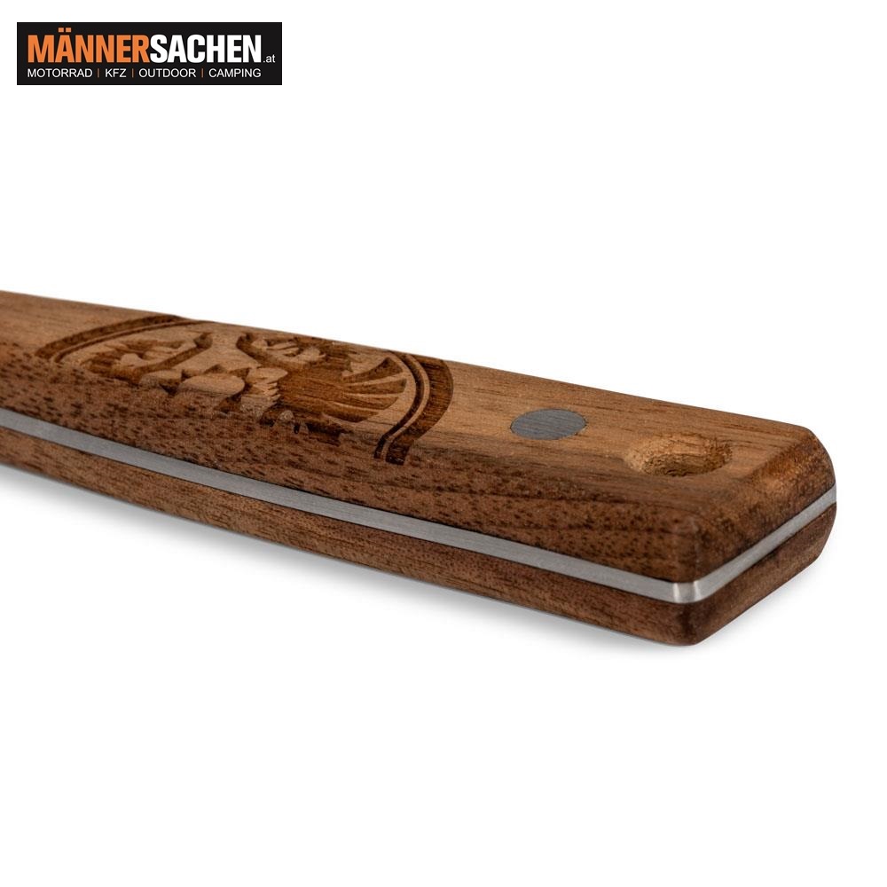 - Griffe aus echtem Walnussholz: mit markanter Maserung und in Retro-Optik