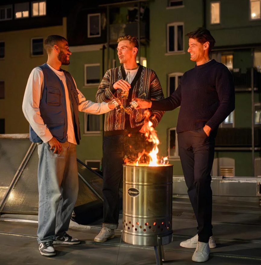 Set aus Feuertonne, Grillplatte und Abdeckhaube