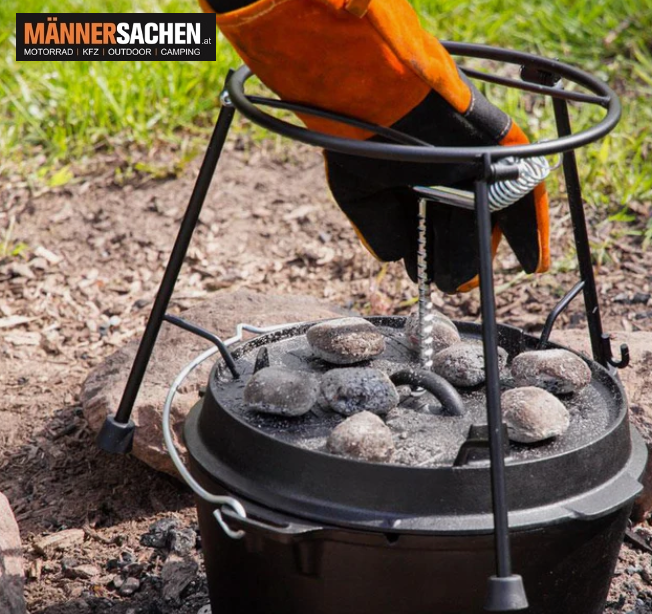 Je nachdem wie du die verschiedenen Produkte zusammensetzt, entsteht mit dem Deckelhalter eine kleine Grillstelle, ein Räucherstand oder eine Kochstelle für den Deckel, wenn dieser umgedreht als Pfanne benutzt wird.
