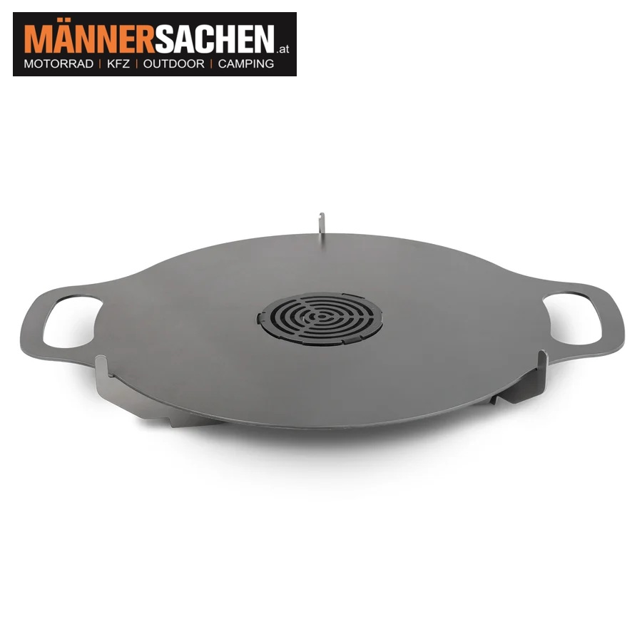 Die in Deutschland hergestellte Grillplatte aus 3mm dickem geölten Stahl liefert dank unterschiedlichen Temperaturzonen beste Ergebnisse.