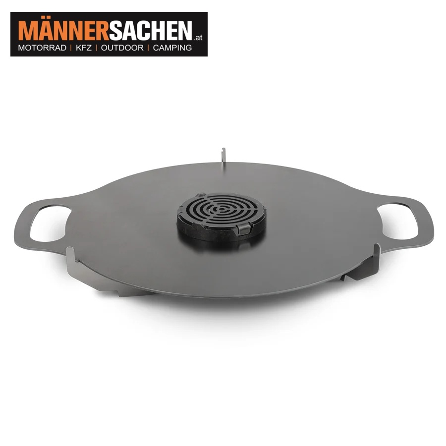 Durch ihre flache Ausführung und das steckbare Trägergestell kannst du sie leicht im Auto oder Van verstauen und als vielfältige Koch- und Grillstation für jeden Ausflug in Wald und Flur nutzen.