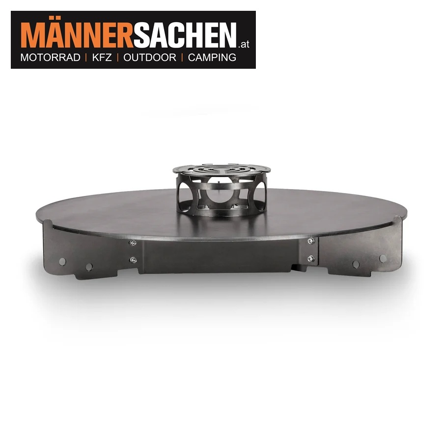 Perfekt geeignet für die Feuerschale Tyropit und die Feuertonne Pyron, ermöglicht die Grillplatte komfortables Grillen im Sitzen oder Stehen.