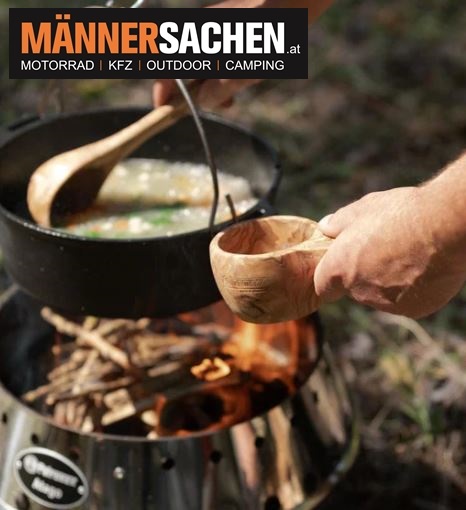 Die Kelle ist langlebig dank des Öl-Wachs-Finishs. Sie kann am Lederriemen am Gürtel oder Rucksack befestigt werden und ist somit immer griffbereit in der Draußen-Küche.
