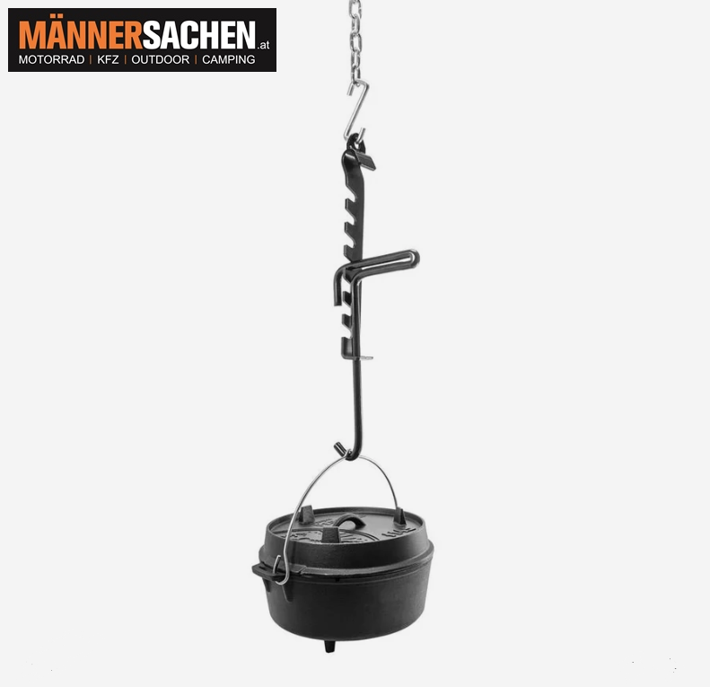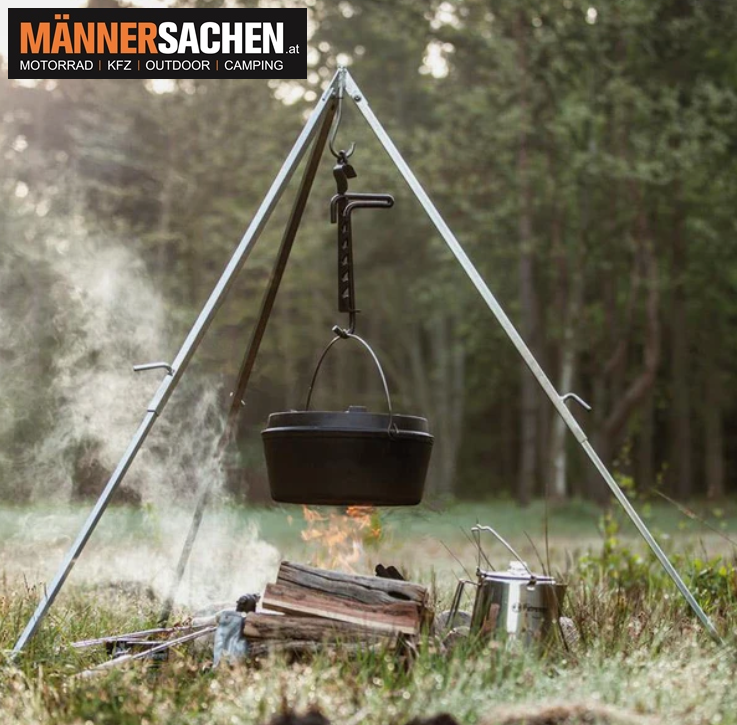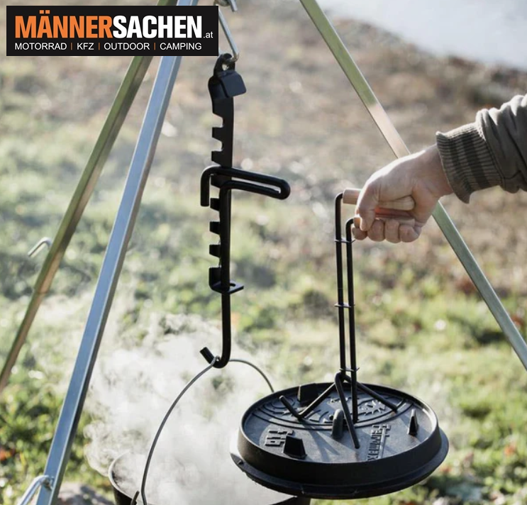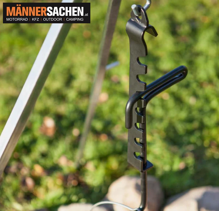 - Zuverlässiges Aufhängen schwerer Kessel und Töpfe über dem Lagerfeuer