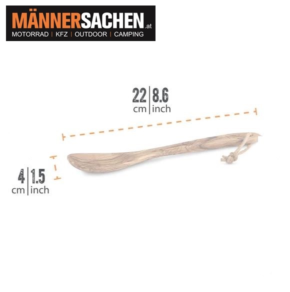 Dank seines natürlichen Materials schützt er die Hand vor Hitze und behält dabei seine wertvolle Patina, auch beim Umrühren in kleinen Bushcraft-Geschirren.
