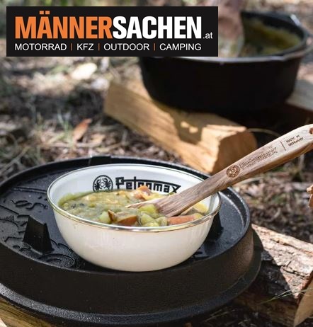 Der Löffel ist mit dem eingebrannten Petromax-Logo und Schriftzug optisch ansprechend gestaltet und passt gut zur Produktserie praktischer und stilvoller Produkte für moderne Bedürfnisse.
