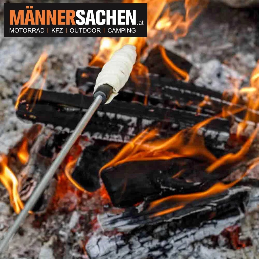 Als robuste und langlebige Alternative zu Stockbrot- Stöcken aus Holz gelingt der Klassiker am Lagerfeuer mit dem Stockbrot Spieß nun sicher und einfach.