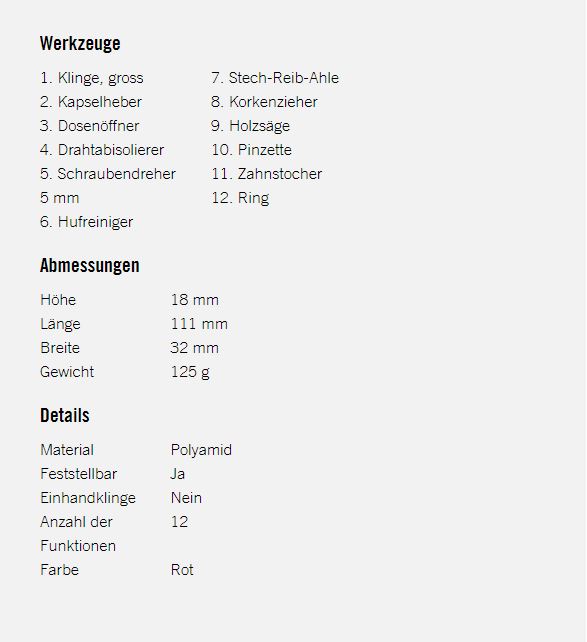 - Taschenmesser mit 12 Funktionen, hergestellt in der Schweiz