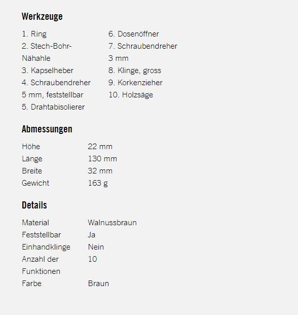 - Taschenmesser mit 10 Funktionen und eleganten Holz-Schalen, hergestellt in der Schweiz