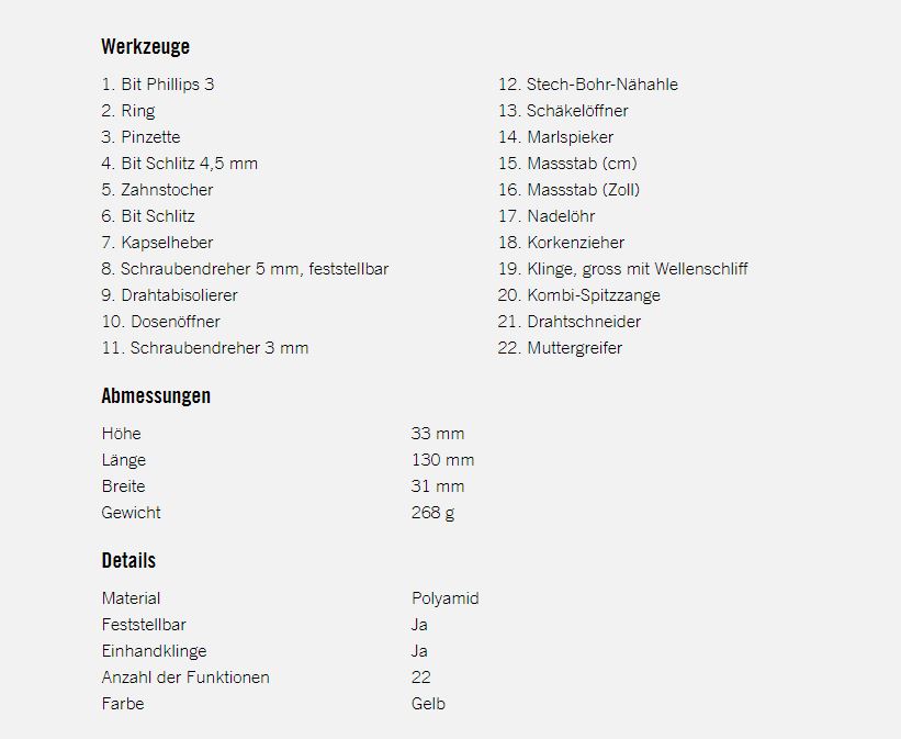 - Taschenmesser mit 22 Funktionen und Zwei-Komponentenschalen für sichere Anwendung, hergestellt in der Schweiz
