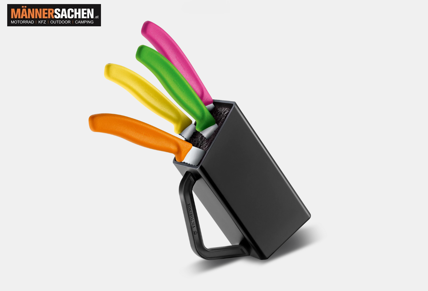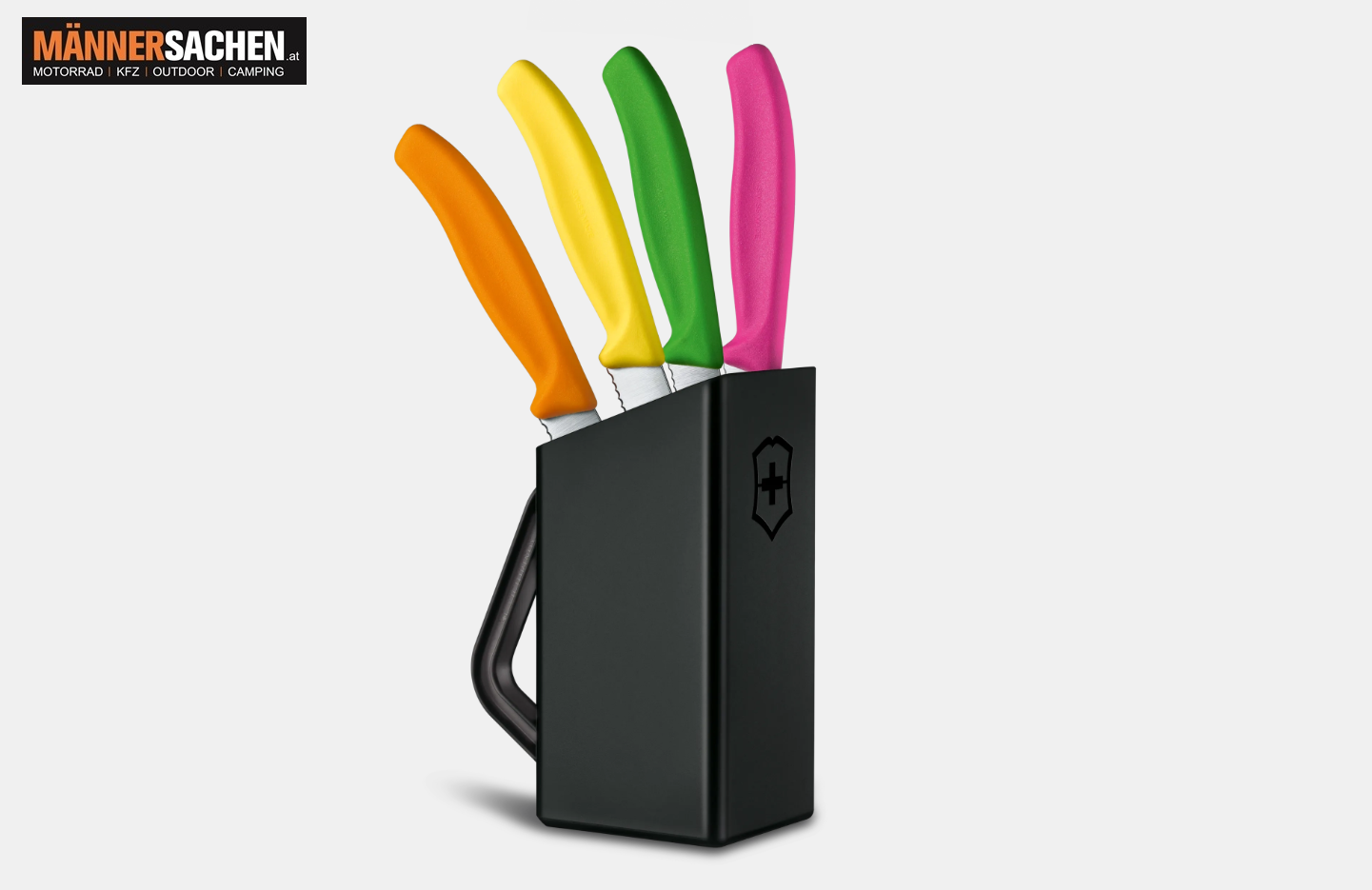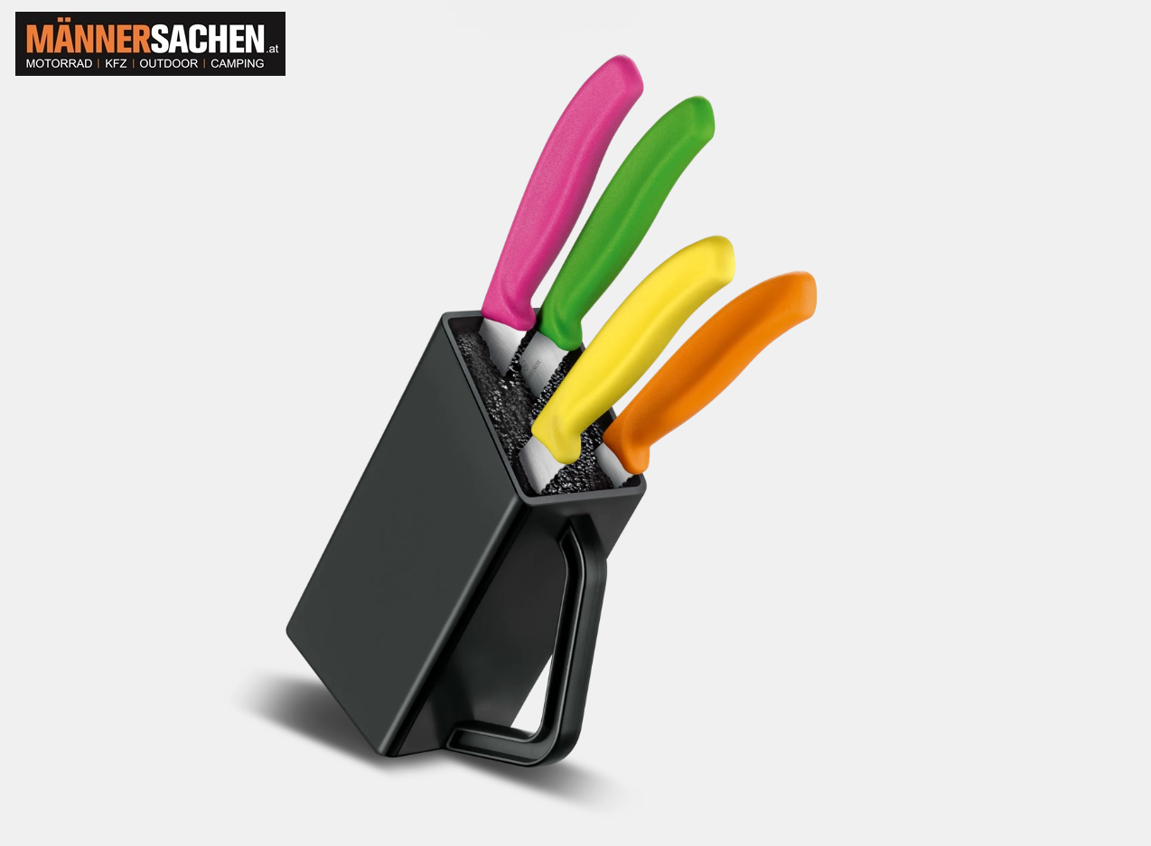 Bringen Sie Farbe und Funktion auf Ihren Tisch: mit unserem aufgeräumten Swiss Classic Steak- und Pizzamesserblock.