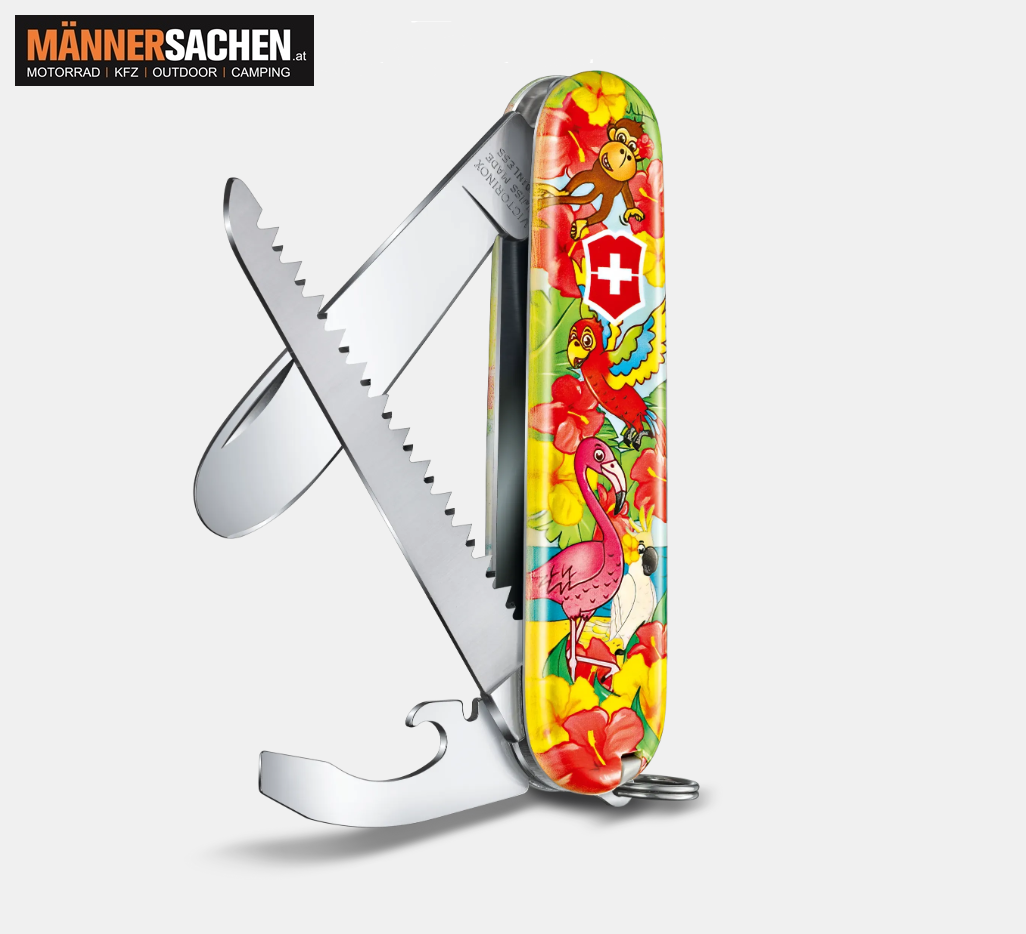 Mittleres Taschenmesser für Kinder Kinder schauen zu Erwachsenen voller Neugier und Bewunderung auf. Kein Wunder: Wir haben Schweizer Taschenmesser. Wenn für ein Kind die Zeit gekommen ist, einen Schritt in die Erwachsenenwelt zu machen, schenken Sie ihm ein My First Victorinox.  Das Taschenmesser speziell für Kinder. Wir haben neun Funktionen integriert, mit denen die Kids alles Wichtige erledigen können. Ausserdem ist die Spitze der Klinge abgerundet, damit die Kleinen immer schön im sicheren Bereich bleiben.   HAUPTMERKMALE - Das Taschenmesser für Kinder für sicheres Sägen von Holz oder das Öffnen von Dosen - Taschenmesser mit 9 Funktionen, hergestellt in der Schweiz - Mit Klinge ohne Spitz, einer Kette und einer Kordel   TECHNISCHE DATEN Höhe: 14 mm Länge: 84 mm Gewicht: 45 g   Bei Fragen gerne anrufen oder eine Mail schreiben! 0676 - 9119990 oder  office@maennersachen.at