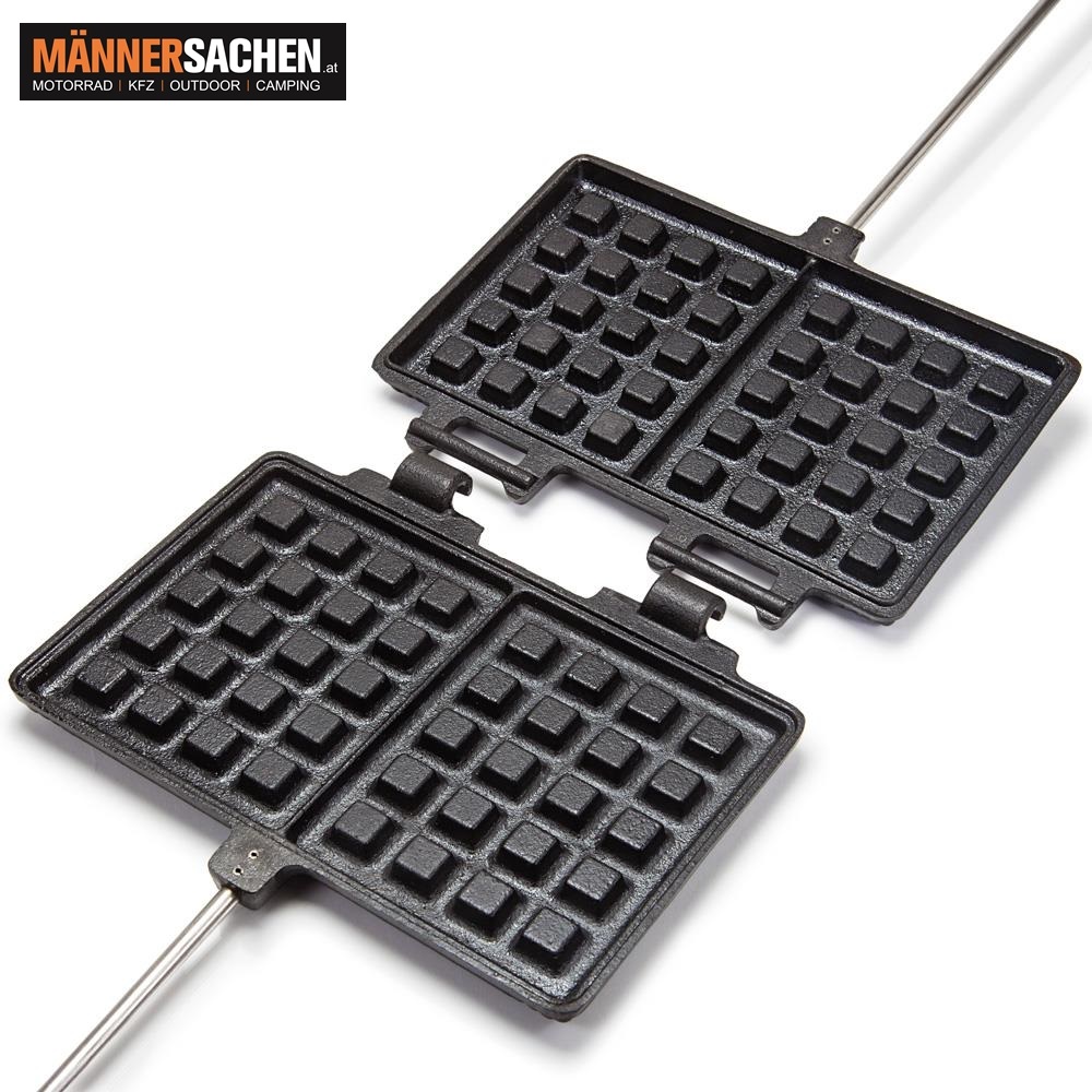 Ob auf dem Grill oder am Lagerfeuer, hier wird jede Waffel zum Hit. Das Waffeleisen bereichert deine Outdoor-Küche um einen weiteren großartigen Nachtisch: Waffelteig einfüllen, gegebenenfalls einmal drehen und schon ist das leckere Gebäck fertig.