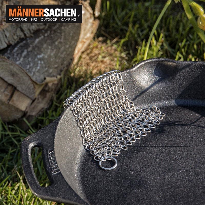 Mit diesem hochwertigen Utensil aus Edelstahl geht es Angebranntem an den Kragen. Mühelos reinigst du mit dem Ringreiniger deinen Topf oder deine Pfanne aus Guss- oder Schmiedeeisen - ohne die wertvolle Patina zu beschädigen. Die Struktur der ineinander fassenden Ringe entfernt schonend Essensrückstände und strapaziert dabei nicht die Oberfläche des Kochgeschirrs.