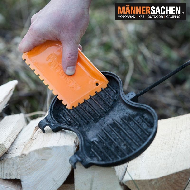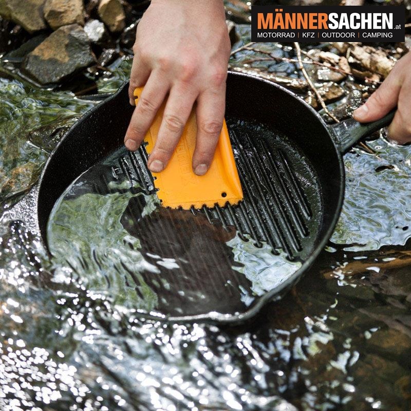 Mit diesem handlichen Schaber befreist du deine Feuertöpfe und Feuerpfannen auch an schwer erreichbaren Stellen von hartnäckigen Koch- und Bratrückständen. Weil sich der Schaber passgenau an die Innenwand von Feuertopf, Feuerpfanne und Kastenform anschmiegt, reinigt er Guss- und Schmiedeeisen ohne die wertvolle Patina anzugreifen.