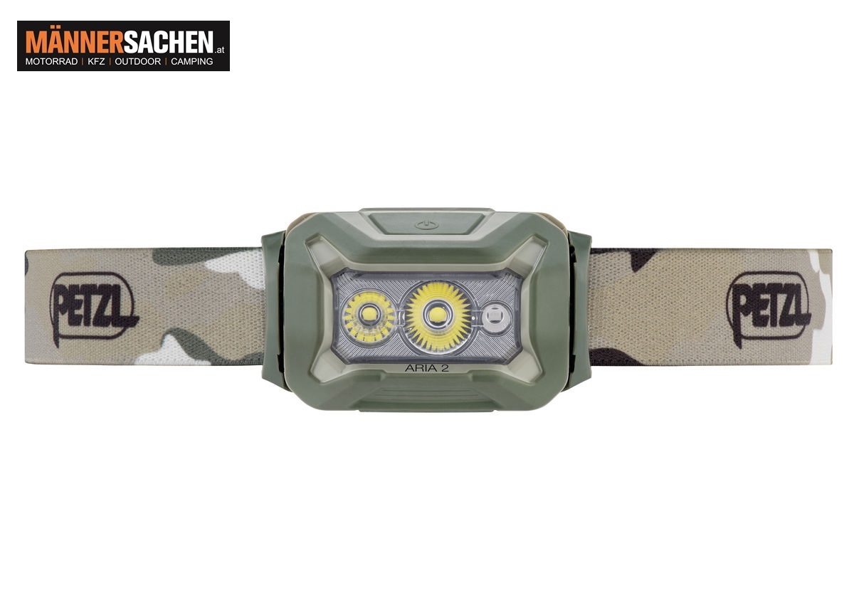 PETZL Stirnlampe ARIA 2 RGB Robuste wasser- und staubdichte Stirnlampe mit weißem, roten, grünen und