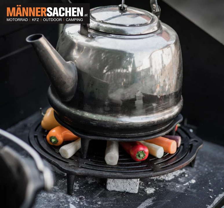 Petromax Feuerstand - Schnelle Montage: Zwei Teile mit einem Handgriff zusammengesteckt. - Vielseitiger Einsatz: Als Hitzequelle zum Vorkochen oder als Untersetzer - Optimale Hitzenutzung: Bereits während des Anzündens kochen oder braten - Universelle Passform: Geeignet für Anzündkamine von 14,5 cm bis 25 cm Durchmesser - Stabile Konstruktion: Vorgefertigte Ausschnitte sichern den Feuerstand am Anzündkamin.   Mit dem Petromax Feuerstand nutzt du bereits die Hitze über dem Anzündkamin. Die beiden Teile werden einfach zusammengesteckt und auf den Kamin gesetzt. Während Kohle oder Briketts glühen, kannst du in einem Topf oder einer Pfanne erste Zutaten anbraten oder Getränke wie Kaffee im Perkolator zubereiten. So geht keine Hitze verloren. Der Feuerstand passt auf Anzündkamine mit einem Durchmesser von 14,5 bis 16,5 cm und 19 bis 25 cm. Er dient als praktische Wärmequelle oder Ablagefläche und ist schnell montiert.   Bei weiteren Fragen stehen wir Ihnen gerne telefonisch oder per Mail zur Verfügung. 0676-9119990  office@maennersachen.at