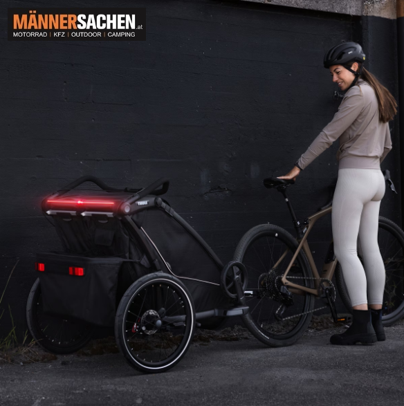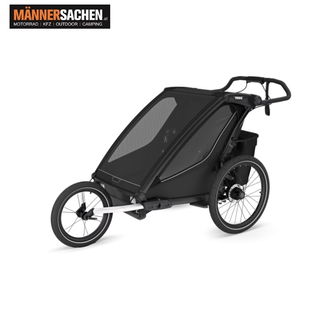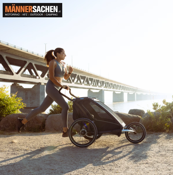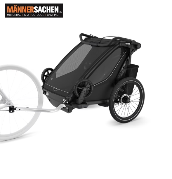 THULE Chariot Sport 2 single Multisport-Fahrradanhänger Einsitzer  erhältliche Farben: schwarz (10201030) oder natural gold (10201032) Der modulare Fahrradanhänger und Jogging-Kinderwagen in einem – für das Training in allen Jahreszeiten sowie mühelose alltägliche Fahrten. Technische Daten : Maximales Gewicht des Kindes: 22 kg Maximale Tragkraft des Kindertransporters: 34 kg Maße zusammengeklappt: 86.3 x 63.3 x 37.5 cm Gewicht: 15.7 kg Schulterbreite: 40.5 cm Sitzhöhe: 64 cm Kompatible Türbreite: 65.1 cm Sicherheitsgurt: 5-Punkt Erfüllt die Sicherheitsnormen: ja   Eigenschaften : - Für Deine Aktivitäten entwickelt 4 Aktivitäten – speziell entwickelt zum Radfahren, Joggen, Spazieren und Skifahren (Jogging- und Skisets separat erhältlich). Das mitgelieferte Regenverdeck und die Sonnenblende halten Dein Kind trocken und schützen es vor der Sonne. - Modernes Design mit hochsichtbarer LED-Beleuchtung Integriertes LED-Licht, betrieben durch die Thule Powerbank 10k (separat erhältlich) für bessere Sichtbarkeit unter allen Bedingungen - Per Handhebel zu bedienende Scheibenbremsen Für mehr Kontrolle in steilem Gelände und beim Laufen - Vollständig gepolsterter Liegesitz Praktische, mit einer Hand einstellbare Liegeposition und vollständig gepolsterter Sitz für ein Nickerchen unterwegs - Einfach von einer Aktivität zur anderen wechseln Das neu gestaltete FlipWing-System ermöglicht einen noch einfacheren Wechsel zwischen Radfahren und Spazieren, da die Räder jetzt nach oben und unten geklappt werden können, während der Anhänger am Fahrrad befestigt ist - Befestigung der Deichsel mit einer Hand Mit der neuen Deichsel kann der Anhänger einfach und sicher mit einer Hand am Fahrrad befestigt und wieder abmontiert werden - Einstellbare Federung Einstellbare Federung, damit Du den Komfort der Fahrt individuell anpassen kannst, wenn Dein Kind wächst oder Du schwere Gegenstände im Anhänger transportierst - XL-Gepäckstauraum Großer Gepäckkorb mit Reißverschluss zur sicheren Aufbewahrung von Gegenständen, der für mehr Beinfreiheit beim Joggen verstaut werden kann - Kompakt zusammenklappbar Dank des kompakten und benutzerfreundlichen Klappmechanismus lässt sich das Produkt einfacher denn je transportieren - Klimatisierter Innenraum Klimatisierter Innenraum mit herausnehmbaren Fenstern und mehrfach verstellbarer Sonnenblende. Belüftungsöffnungen sorgen für eine optimale Luftzirkulation und Klimaregulierung, abnehmbare Klemmen sorgen für mehr Belüftung bei Verwendung eines Regenverdecks - Praktische Aufbewahrung Die Thule Click n’ Store bietet eine praktische Aufbewahrung der Spazier-, Jogging- und Radfahrsets am Kinderwagen, während eine andere Aktivität ausgeführt wird - Einfache Pflege Die komfortablen gepolsterten Sitze sind abnehmbar und leicht zu reinigen    Wir autorisierter THULE Fachhändler. Bei weiteren Fragen stehen wir Ihnen gerne telefonisch oder per Mail zur Verfügung. 0676 - 9119990  office@maennersachen.at