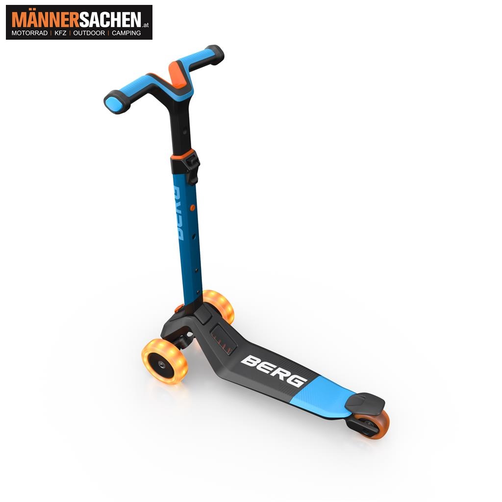 BERG TOYS Scooter NEXO FOLDABLE  Farbe: BLUE Artikel Nr.: 24.77.01.00 Empfohlenes Alter: 2+ Jahre Empfohlene Nutzergröße: 90 - 140 cm   Klicken Sie HIER, um ein Video des Nexo Foldable zu sehen! GLATT UND SICHER LENKEN Du kannst das Lenkerschloss einstellen und anpassen, um unverhoffte Bewegungen nach links oder rechts zu verhindern. Außerdem kann der Lenker auf drei verschiedene Positionen eingestellt werden, sodass der Roller jahrelang mit deinem Kind mitwächst. KLAPPBAR Kinder können nicht immer und nicht überall rollern, wann und wo sie mögen. Kein Problem Der Nexo lässt sich mit nur einem Klick zusammenklappen. Und man kann ihn mit dem Handgriff hinter sich herziehen. Ein erneutes Ausklappen ist genauso leicht. LED-LICHTER IN DEN RÄDERN (nicht im Lieferumfang enthalten) Natürlich möchtest du, dass dein Kind gesehen wird, wenn es auf dem Nexo fährt. Die LED-Lichter in den Vorderreifen sorgen dafür, dass dein Kind sichtbar ist. Wenn sich die Räder bewegen, werden die LED-Lichter aktiviert und leuchten, wenn dein Kind rollert! ZWEI WECHSELSEITIG AUSTAUSCHBARE MODULE (nicht im Lieferumfang enthalten) Das LED Add-on bietet 12 Einstellungen für verschiedene Licht- und Farbmuster. Und mit dem Magnet Add-on können Kinder magnetische Münzen beim Rollern sammeln.   Bei Fragen rufen Sie gerne an oder schreiben Sie eine Mail! 0676 9119990 oder office@maennersachen.at
