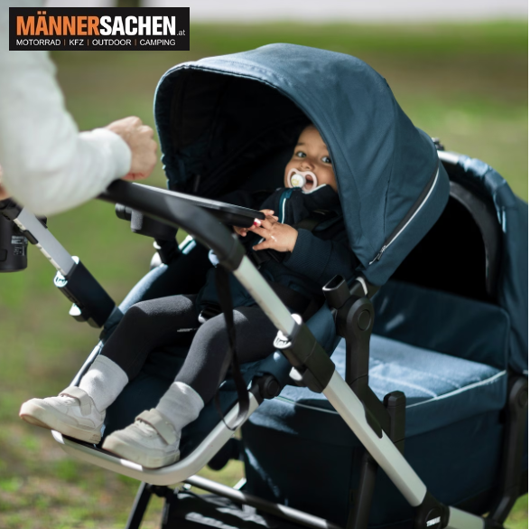 THULE Urban Glide 4-wheel Schwarz (10101976) Buggy für jedes Terrain  Erhältliche Farben: Soft Beige, Black on Black, Mid Blue on Black, Tinted Taupe on Black  Ab 25.09.2025 erhältlich ! Gerne können Sie jedoch den Kinderwagen bei uns vorbestellen !  Der vierrädrige Thule Urban Glide ist ein vielseitiger Gelände-Kinderwagen, der alles von Outdoor-Pfaden bis zu den Straßen der Stadt, bewältigen kann. Eigenschaften • Leicht und einfach zu manövrieren Die schwenkbaren Vorderräder mit geländespezifischer Einrastfunktion und die großen Hinterräder verleihen dem Buggy Leichtigkeit und Wendigkeit • Ganztägiger Komfort Die integrierte Beinauflage und der bequeme Sitz mit einstellbarem Neigungswinkel sorgen den ganzen Tag hindurch für umfassenden Kinderkomfort – sei es beim Schlummern oder beim Beobachten der Welt • Einfaches Zusammenklappen Einfach einhändig zusammenzuklappen und dann standsicher, dadurch leicht aufzubewahren und zu transportieren • Leichtgängige Drehbremse Integrierte Drehhandbremse für eine sanfte, sichere Geschwindigkeitskontrolle auf jedem Gelände • Bereit ab dem ersten Tag Kann ab Geburt mit Thule Kinderwagenaufsatz oder Babyschalenadapter verwendet werden (separat erhältlich) • Geräumiger Stauraum Viel Platz für Utensilien dank großem Gepäckkorb (Fassungsvermögen 10 kg) mit Reißverschlussabdeckung, Netztasche auf der Rückseite und zwei Netzfächern für Snacks und Spielzeug • Bequem und geschützt mit Magnetverschluss Sicherer und bequemer Sitz mit leicht verstellbarem 5-Punkt-Gurt mit magnetischem Verschluss • Vor dem Wetter geschützt Großes Verdeck mit umfassender Abdeckung und Belüftung für garantierten Komfort des Kindes • Für jeden Untergrund geeignet Hochwertige Federung und Luftbereifung ermöglichen Eltern wie Kindern auf jedem Terrain sanftes Vorankommen • Einfache Spaziergänge Ergonomischer, einstellbarer Schiebebügel für maximalen Komfort der Eltern • Optimale Sicht Reflektierende Elemente an Verdeck und Rädern sorgen für Sichtbarkeit und somit Sicherheit   Technische Daten Maximales Gewicht des Kindes: 22 kg Maximale Tragkraft des Buggys: 34 kg Maße zusammengeklappt: 88 x 58 x 28 cm Gewicht: 13 kg Sitzhöhe: 51 cm Kompatible Türbreite: 69 cm Kinder: 1 Materialien: Aluminiumrahmen, Stahl- und Nylonteile und Polyesterverdeck     Bei Fragen einfach anrufen oder ein E-Mail schreiben! 0676 9119990 oder  office@maennersachen.at