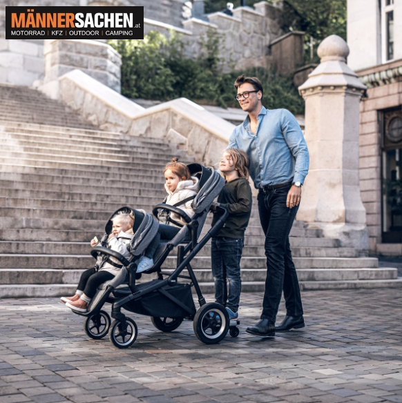 • Zukunftssicher – kann für Geschwister oder Zwillinge erweitert werden- Stoßdämpfende 4-Rad-Federung für eine ruhige Fahrt