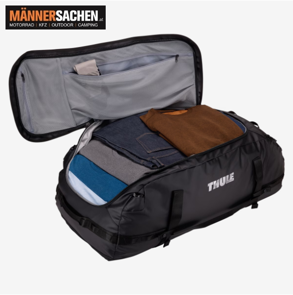 THULE Chasm 40 Liter Duffel erhältliche Farben: Pond (3204992), Golden (3204991), Black (3204989), Olivine (3204990), Deep Khaki (3205139), Soft Sand (3205138) Klicken Sie HIER, um ein Video der Chasm Reisetasche zu sehen! Die Thule Chasm ist eine robuste Reisetasche, die Du in Deinem Kofferraum oder in Deiner Dachbox transportieren kannst – perfekt für kurze Ausflüge oder mehrtätige Abenteuer. Eigenschaften : - Aus recycelten Geweben Alle Außen- und Innenmaterialien, Gurtbänder und Netzmaterialien bestehen aus 100 % recycelten Geweben - Einfacher Zugang zur Ausrüstung Einfacher Zugang zur Ausrüstung durch die große und breite Öffnung - Lässt sich von einer Reisetasche in einen Rucksack umwandeln 2-in-1-Design – lässt sich einfach von einer Reisetasche in einen Rucksack umwandeln (Rucksackträger bei Nichtgebrauch verstaubar) - Wetterfeste Materialien Das strapazierfähige, wasserfeste Tarpaulin-Material schützt den Inhalt vor den Elementen - Aufteilung innen Innere Netztaschen zur ordentlichen und leicht auffindbaren Aufbewahrung von kleinen Gegenständen - Hält Deine Gegenstände an Ort und Stelle Äußere Kompressionsgurte verhindern, dass Dein Gepäck in der Tasche nach unten rutscht, wenn sie als Rucksack getragen wird - Tragetasche auch als innere Aufbewahrung nutzbar Inbegriffene Tragetasche zur praktischen Aufbewahrung auch als Zubehörtasche nutzbar - Schützt Dein Eigentum Gepolsterter Boden schützt Dein Eigentum beim Absetzen - Schneller Zugriff auf alles Wichtige Große Netztasche mit Reißverschluss für kleinere, wichtige Gegenstände - Einfaches Heben Dank extragroßer Griffschlaufen einfaches Verstauen und Herausheben aus Kofferraum oder Dachbox - Diebstahlsicherung Schutz vor Diebstahl durch abschließbare Reißverschlussschieber (Schlösser separat erhältlich)   Technische Daten : Maße: 56 x 32 x 25.5 cm Gewicht: 1.4 kg Volumen: 40 Liter Materialien: 100 % recyceltes 900D-Polyester, phthalatfreies Laminat Kollektion: Thule Chasm Collection   Bei weiteren Fragen stehen wir Ihnen gerne telefonisch oder per Mail zur Verfügung. 0676 - 9119990  office@maennersachen.at